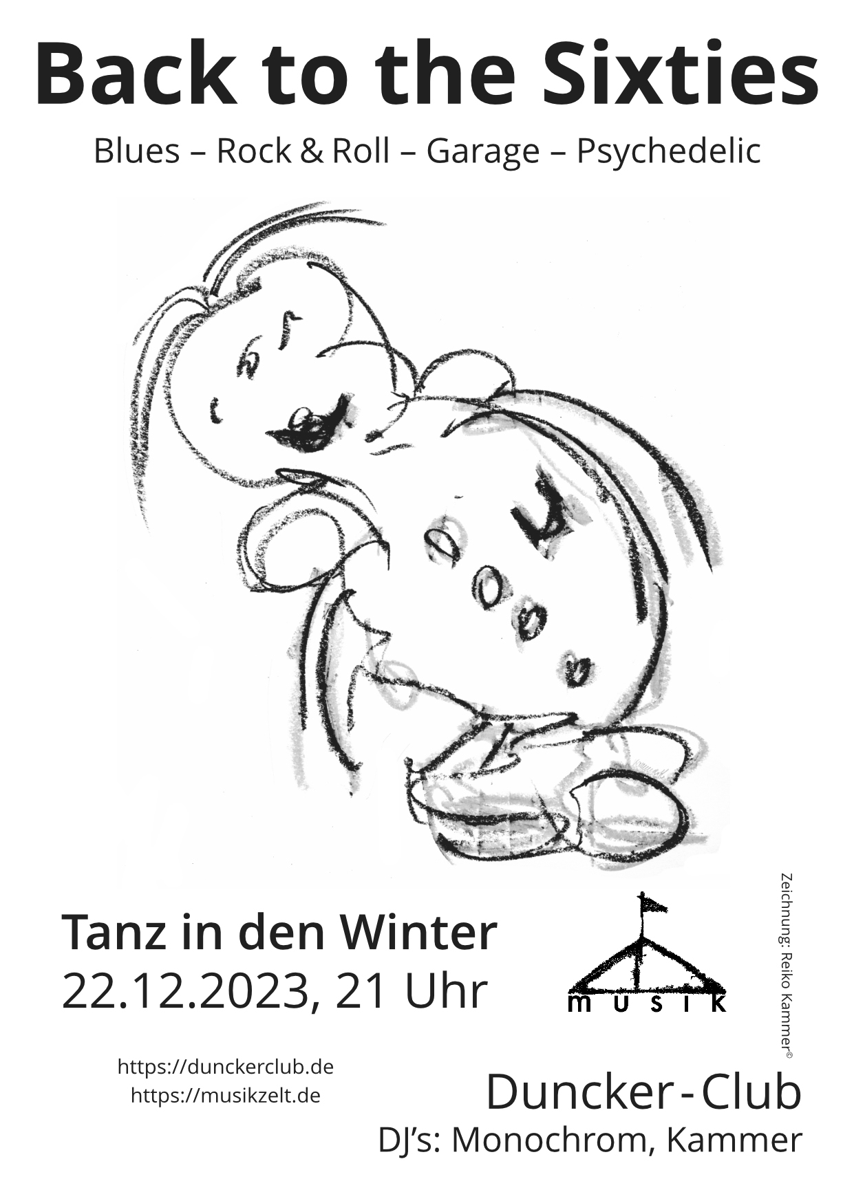 | Mi | 24.12. | Back to the Sixties 22 Jahre „with a little help“ im musikzelt Blues, Rock & Roll, Garage, Psychedelic, 60s & 70s ![]() DJ's Kammer, Stroko |