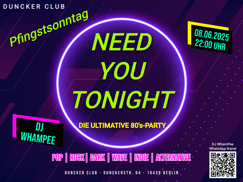 | Fr | 26.12. | Need You Tonight Die ultimative 80s Party Pop Rock Wave All Time Favorites ![]() DJ WhamPee |